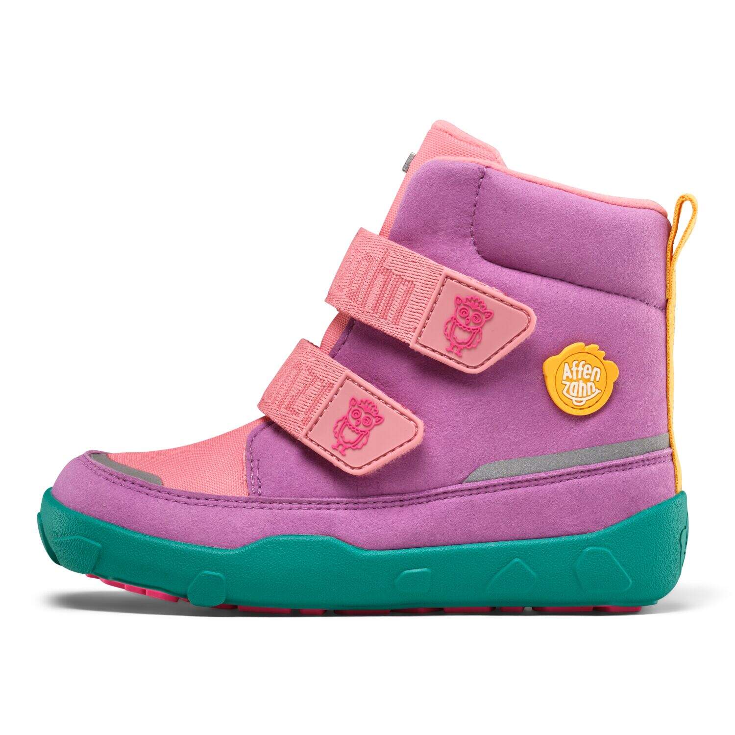Ob Tiergesichter, bunte Farben oder kleine Stickereien – Affenzahn Schuhe bringen Kinderaugen zum Leuchten. Die Designs sind nicht nur fröhlich, sondern fördern auch das Wiedererkennen von Links und Rechts, z. B. durch Motiv-Hälften auf den Innensohlen.
